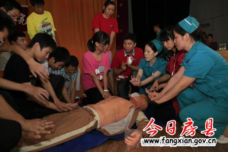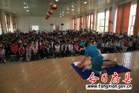 今日房縣網訊 記者魏遠揚 通訊員裴中東報道:8日上午,正值教師節前夕,縣一中在學校大禮堂開展“急救知識進校園”活動,為900余名高一新生上了生動的一課。