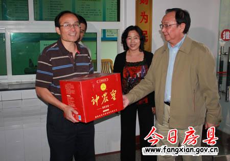 圖為李佑才一行看望慰問省財政廳駐房縣新農村工作隊