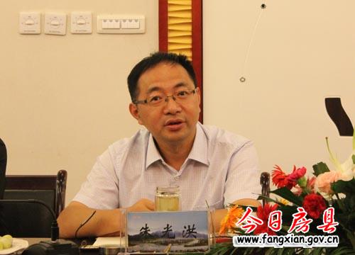 圖為縣長朱光洪匯報我縣“兩癌”免費檢查工作情況