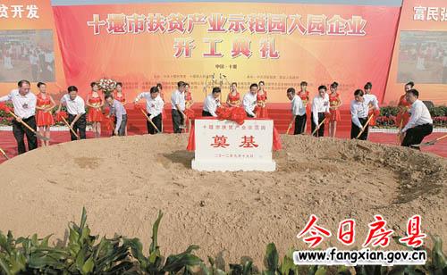 張昌爾宣布秦巴山片區(qū)十堰市扶貧產(chǎn)業(yè)示范園入園企業(yè)開工。出席開工儀式的各位領導共同為示范園奠基(如圖)。
