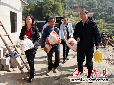 在青峰鎮(zhèn)龍王坪村6組村民劉志炳的倒房重建現(xiàn)場(chǎng),徐錦鳳親切地和劉志炳交談,了解劉志炳災(zāi)后生產(chǎn)和生活情況,詢問還有哪些困難需要政府幫助解決。看到即將封頂?shù)男路浚戾\鳳甚感欣慰,她仔細(xì)查看了新建房屋的質(zhì)量,詳細(xì)了解建設(shè)房屋的費(fèi)用、后續(xù)的工序以及入住需要的時(shí)間;徐錦鳳還把帶來的大米、面條、食用油一一交給劉志炳,并囑咐劉志炳一定要保重身體,要自力更生、艱苦奮斗,過上新的生活。