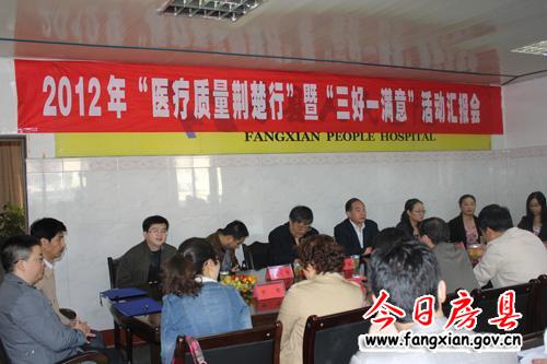 在工作匯報會上,縣人民醫院院長車向表示,縣人民醫院根據省衛生廳和市衛生局相關文件精神,結合醫院實際情況,以“醫療質量荊楚行”活動為平臺,以“三好一滿意”活動為重點,緊密結合“優質護理示范病房、抗菌藥物專項治理、創先爭優、治庸問責”等活動,著力提升醫療水平,持續改進醫療質量,切實保證醫療安全,大力弘揚高尚醫德,努力構建和諧醫患關系,創建人民群眾滿意醫院,取得了明顯的成效。