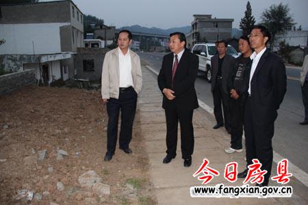 圖為縣委書記沈明云在紅塔鎮朱灣村察看迎賓大道建設情況