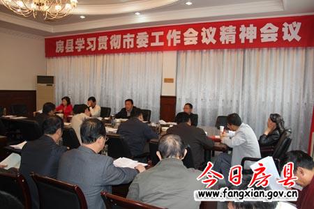 今日房縣網訊 記者陳銳 10月23日,我縣在縣委常委會議室召開會議,學習貫徹市委工作會議精神。縣領導沈明云、朱光洪、張慧彬、陸毅、王家波、劉慶濤、陳淵等在家的縣四大家領導出席會議。