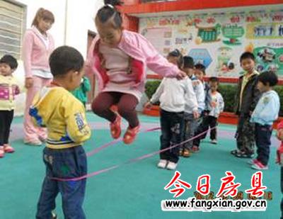 清晨孩子們在老師組織下,伴隨歡樂的節拍,興致盎然的參加晨間鍛煉活動,孩子們高興地玩著丟沙包、踢毽子、跳繩、拍球、舞龍等游戲。孩子們在感受運動的快樂的同時,小臉紅潤了,飯量增加了,體質增強了,得到了家長和孩子們的熱烈歡迎和一致好評。(唐甜 攝)