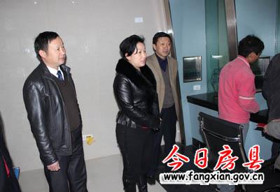 圖為副縣長林華(左二)察看九道鄉(xiāng)農商行營業(yè)部調研農村金融市場發(fā)展情況