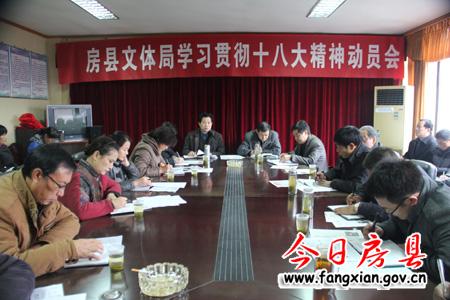 今日房縣網訊 記者何瓊 報道:4日,縣文體局召開專題會議,學習貫徹十八大報告精神。局長劉世宏號召全體干部職工推行五個“強化”,提升實力活力,即強化信息培植,提高全體干部職工的自信心與工作積極性;強化項目爭取,加快基礎設施建設,經濟規劃籌備即將開工的文體中心建設;強化隊伍管理,建設一支恪盡職守、團結協作、健康向上的問題隊伍;強化責任意識,切實抓好當前各項工作;強化創新精神,奮力開創文體工作新局面。為進一步深化學習,局機關及二級單位還通過開展一次專題集中討論活動、開辟一塊學習園地、組織一次專項檢查為載體,理清工作思路,明確工作任務,為明年的三館建設工作奠定良好的基礎。