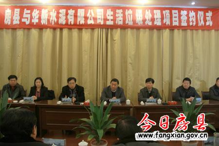 今日房縣網訊 記者戢太敏 通訊員付傳斌 報道:18日,房縣人民政府與華新水泥股份有限公司正式簽約1.2億元生活垃圾處理項目。華新水泥股份有限公司副總裁、紀委書記、工會主席周家明,縣委書記沈明云,華新水泥股份有限公司助理副總裁、華新環境工程有限公司總經理王煥忠,縣人大常委會主任王啟云,縣政協主席陸毅,縣委常委、常務副縣長劉慶濤,華新水泥房縣有限公司總經理何建華,副縣長林華出席簽約儀式。縣委常委,常務副縣長劉慶濤與華新水泥股份有限公司助理副總裁、華新環境工程有限公司總經理王煥忠在投資協議上簽字。