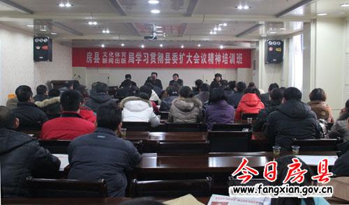 今日房縣網訊 記者何瓊 通訊員李麗報道: 25日,縣文體局召開職工大會,工作人員將刊登有沈書記重要講話的《今日房縣報》一一分發到每個與會者手中,縣文體局局長劉世宏就學習講話精神做了專題輔導,同時就文體系統全面貫徹落實縣委擴大會議精神作了安排部署,明確了縣文體局的工作奮斗目標為“繁榮房陵文化,發動全民健身,助推經濟發展”,號召全系統干部職工要認真學習會議精神,充分發揮文化人的智慧,真抓實干,大力加強文化基礎設施建設,弘揚詩經文化產業,以實際行動推進全縣經濟發展;同時要做到“心往一處想、勁往一處使、話往一處說、事往一處干”,營造一個團結協作、寬松和諧的干事創業環境,以更加堅定的信心、更加飽滿的熱情、更加務實的工作,推動文化體育事業大繁榮大發展。