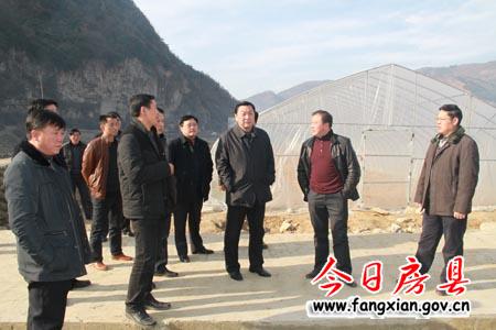 圖為縣委書記沈明云等領導在大木廠鎮察看大棚蔬菜發展情況