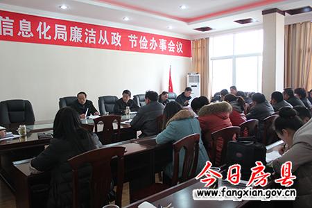 今日房縣網訊 記者 楊鵬 通訊員 高麗平 報道:1月29日,縣經信局組織全體干部職工召開專題會議,學習縣委書記沈明云在全縣廉潔從政節儉辦事工作會議上的講話。局長張安學要求,全體干部職工要深刻領會“八項規定”的精神實質,以實際行動改進工作作風,確保對精神的貫徹落實不走樣、不變通、重成效,真正把力量凝聚到改進工作作風、提升工作效率和水平上來,為推進我縣經濟的跨越式發展貢獻出自己的力量。