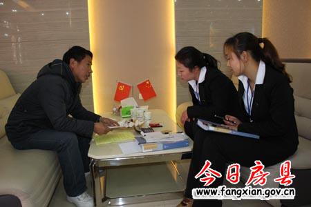 圖為工作人員向客戶介紹樓盤情況