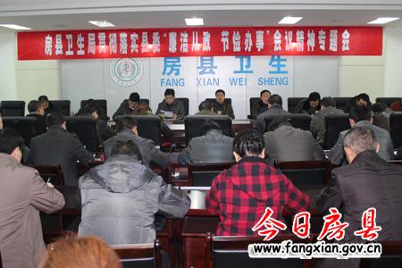 今日房縣網訊 記者劉臣 實習生歐陽正宵 通訊員劉勇 報道:1日,縣衛生局召開全系統專題會議,學習和貫徹中央“八項規定”、省衛生廳貫徹落實“厲行節約,反對鋪張浪費”、縣委“五項規定”等會議精神,并對節前各項工作進行了安排部署。