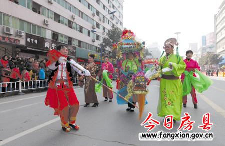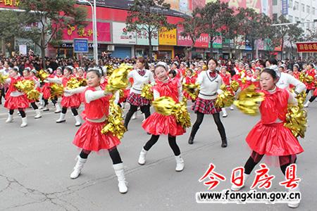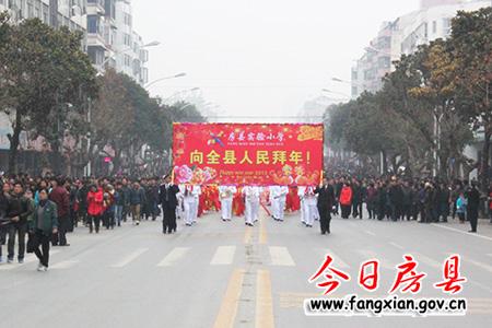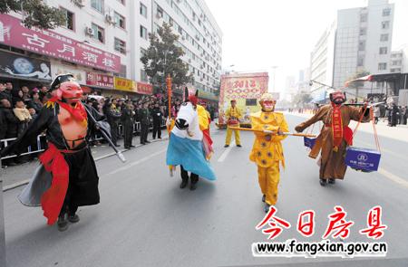 隨著縣委副書記張慧彬宣布:“詩祖故里·文明房縣”2013年春節民間文藝大巡游活動正式開始!兩條“金龍”上下翻飛,左右騰越行走在隊伍最前面,31臺彩車、45支表演團隊緊隨其后,優美的音樂伴奏、歡快的舞蹈表演表達了了人們對建設“實力房縣、生態房縣、和諧房縣、文明房縣、幸福房縣”的美好期盼,有著深厚文化底蘊的房陵古城頓時沉浸在一片喜慶祥和的節日氛圍中。