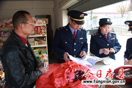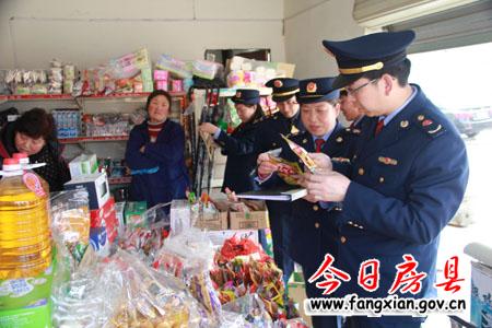 圖為工商執(zhí)法人員正在檢查一食品經(jīng)營店兒童食品安全情況