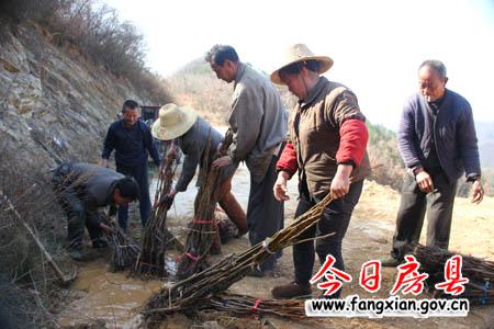 村民們正在對核桃苗根部進(jìn)行浸水處理