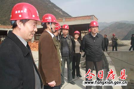 圖為沈明云一行在三里坪電站察看電站建設情況