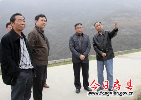 圖為朱光洪一行在關(guān)門山水庫調(diào)研