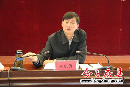 圖為縣委常委、常務(wù)副縣長劉慶濤就消防工作做重要講話