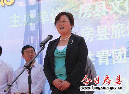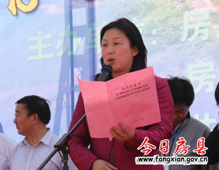 圖為縣委常委、宣傳部長(zhǎng)徐錦鳳宣布大賽開始