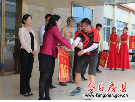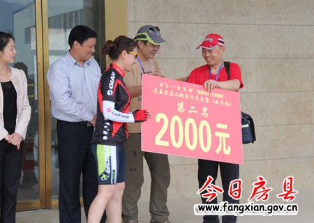 圖為女子組第二名獲得者正從佳賓手中接過(guò)獎(jiǎng)牌