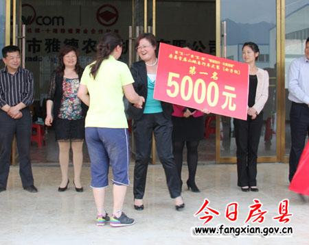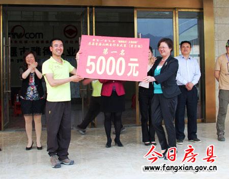圖為第一名獲得者正接過(guò)獎(jiǎng)品