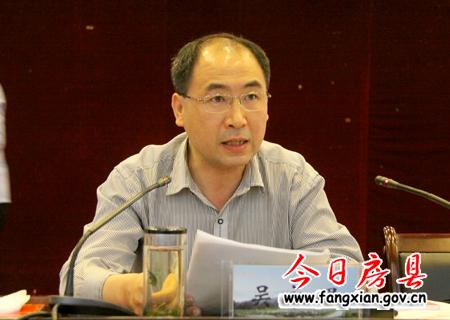 圖為縣委常委、副縣長吳永強傳達(dá)全市防汛抗旱工作會議精神并安排部署今年防汛工作