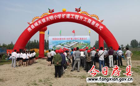 天明小學擴建工程是縣政府2012年“七件實事”之一,此前已完成土地報批、征地拆遷、地質(zhì)勘查、圖紙設(shè)計和招投標工作。擴建后的天明小學占地52畝,新建四棟教學樓、一棟綜合樓、一棟學生食堂、一個風雨操場等主體建筑及圍墻、運動場地、道路、綠化、給排水、供配電等附屬設(shè)施,總建筑面積約15000平方米,總投資約4000萬元,擬建工期300天。工程完工后,可容納學生2500人,設(shè)置56個標準教學班,將有效緩解城西方圓5公里內(nèi)學生入學難的問題,屬房縣乃至十堰市一流的鄉(xiāng)鎮(zhèn)小學。