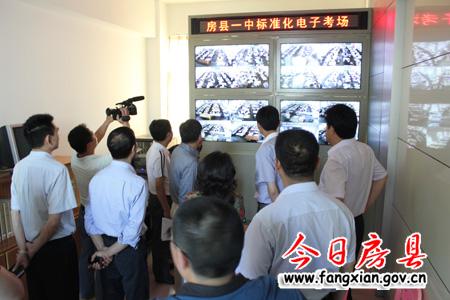 劉慶濤一行在縣一中的標(biāo)準(zhǔn)化電子考場觀看監(jiān)控實(shí)況