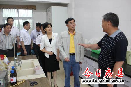 圖為楊剛一行在縣質(zhì)監(jiān)局實(shí)驗(yàn)室察看實(shí)驗(yàn)室建設(shè)及檢測(cè)設(shè)備配備情況