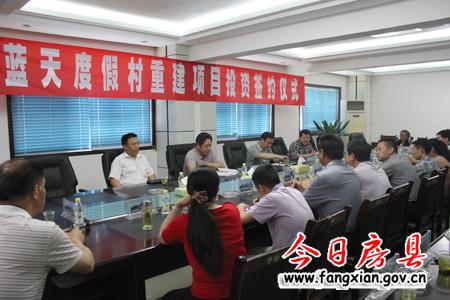 今日房縣網(wǎng)訊 記者楊鵬 報(bào)道:14日,在行政服務(wù)中心會(huì)議室,副縣長(zhǎng)高明哲代表政府與蓬萊金鑫公司負(fù)責(zé)人簽訂重建藍(lán)天度假村投資協(xié)議,標(biāo)志著我縣藍(lán)天度假村重建項(xiàng)目正式啟動(dòng)。簽約儀式由縣政府黨組成員李相明主持。