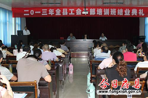 今日房縣網訊 通訊員李鵬報道:21日下午,全縣工會干部培訓班結業典禮在縣委黨校舉行,縣委黨校常務副校長彭堅、縣總工會黨組書記、常務副主席劉玉萍參加結業典禮。