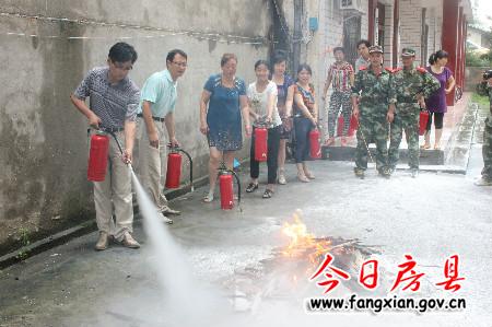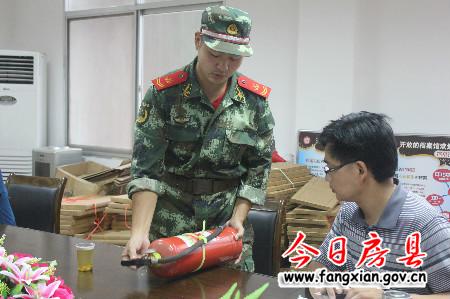 消防官兵講解滅火器使用方法