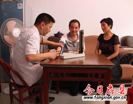 縣人民醫(yī)院專(zhuān)家正在為伍昌云的丈夫檢查身體