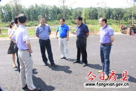 圖為張濤一行在縣城至軍店一級路察看工程建設(shè)情況