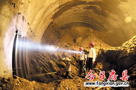 圖為工程技術(shù)人員正在查看戢家灣隧道建設(shè)情況。